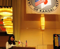 For the first time we had four JAWK Art Award winners from Canadian Academy present and they talked about their work. Additionally two of the three Japanese university students who received JAWK scholarships introduced themselves to JAWK.